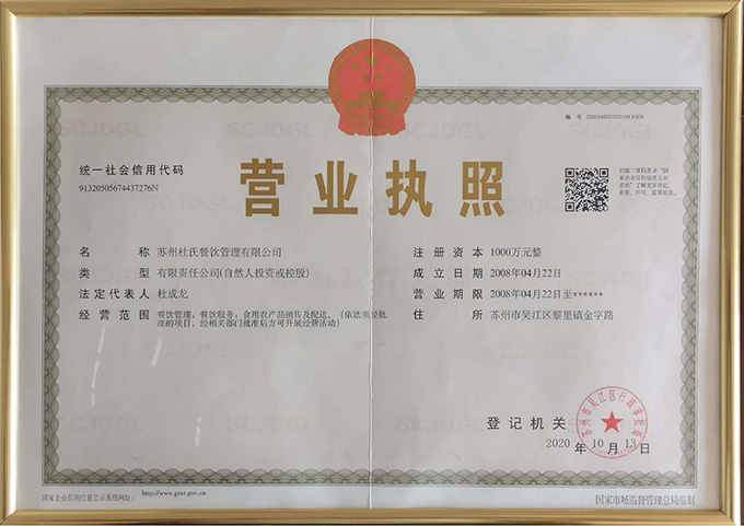 公司營(yíng)業(yè)執照-杜氏餐飲