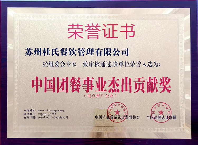 中國團餐事業(yè)杰出貢獻獎-杜氏餐飲