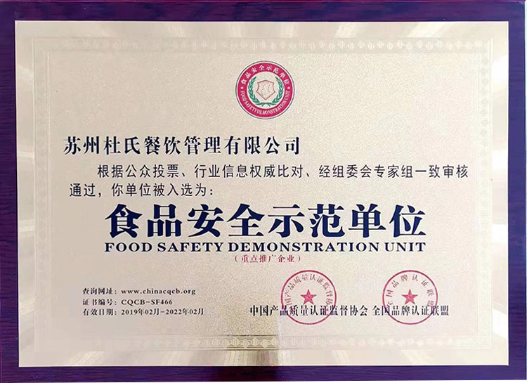 食品安全示范單位-杜氏餐飲
